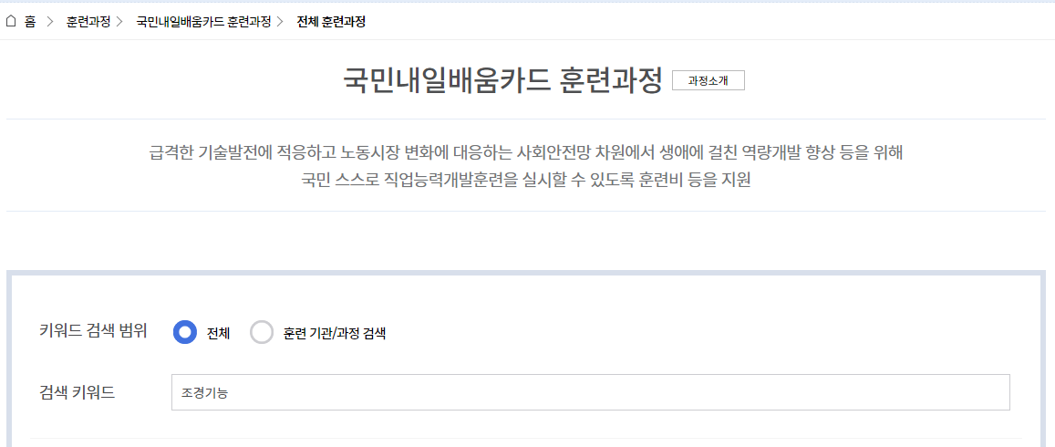 아마 학원에 그냥 찾아가서 문의를 하셔도 대부분 국비지원 관련해서 안내를 해주시긴 하겠지만, 국민내일배움카드 훈련과정으로 검색되는 곳이 아무래도 문의하기 훨씬 편하실 수 있으니 미리 검색을 해보시고 가시기를 권해드립니다.